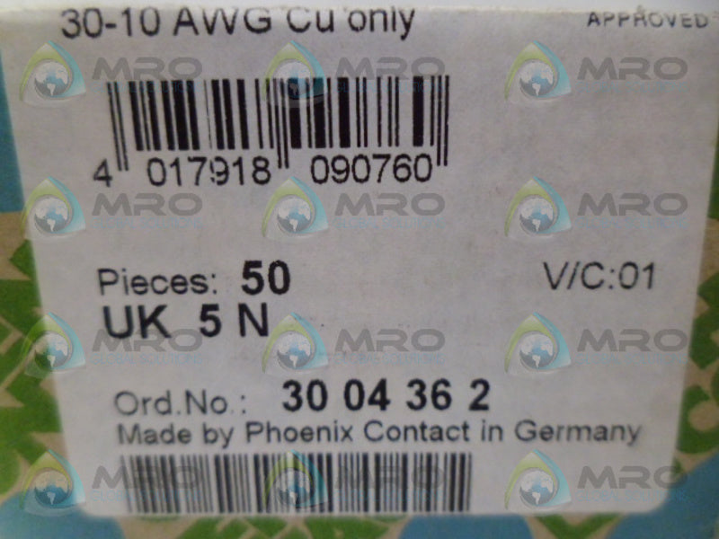 PHOENIX CONTACT UK5N TERMINAL BLOCK (PKG OF 50) NSFS