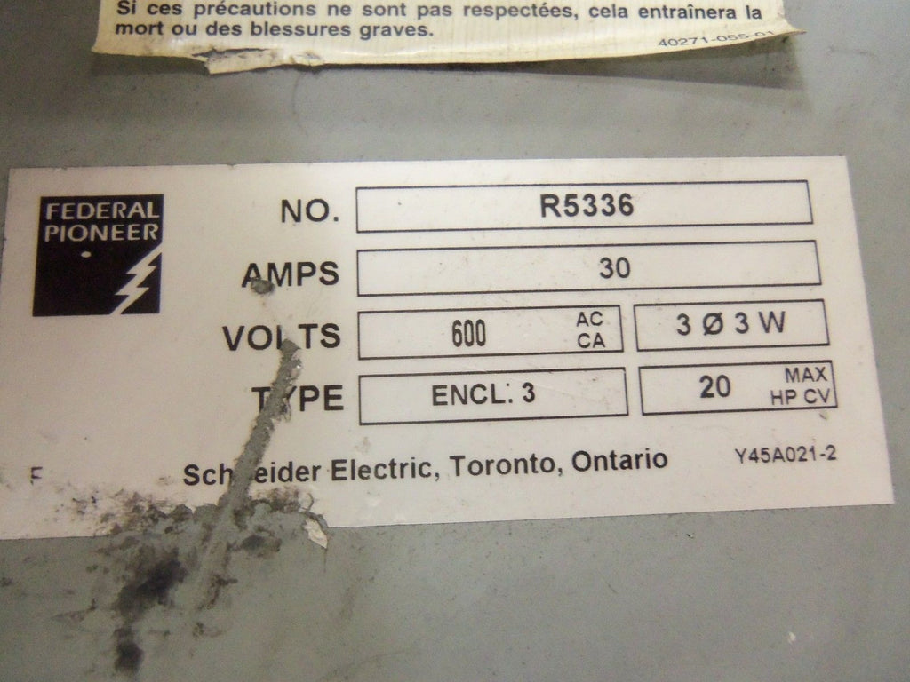 FEDERAL PIONEER R5336 DISCONNECT SWITCH UNMP