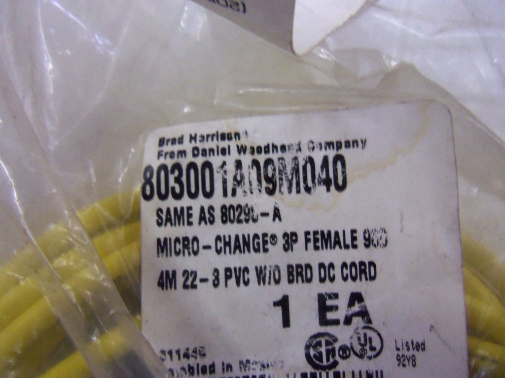 DANIEL WOODHEAD 80298-A 803001A09M040 CORDSET *NEW IN FACTORY BAG*