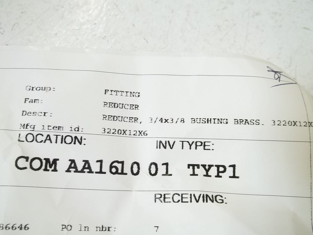 3220X12X6 REDUCER, 3/4" X 3/8" BUSHING BRASS *NEW NO BOX*