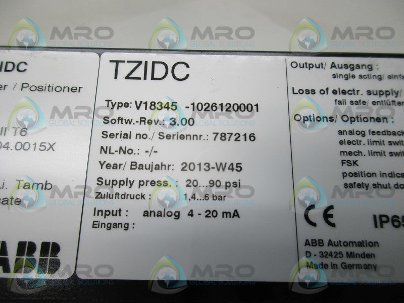 ABB V18345-1026120001 VALVE POSITIONER NSMP