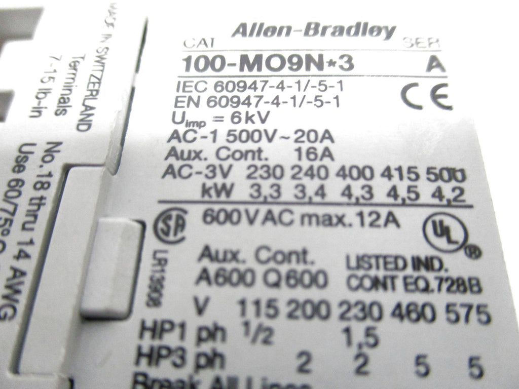 ALLEN BRADLEY 100-M09NKD3S SER. A 24V 20A (WH) NSMP