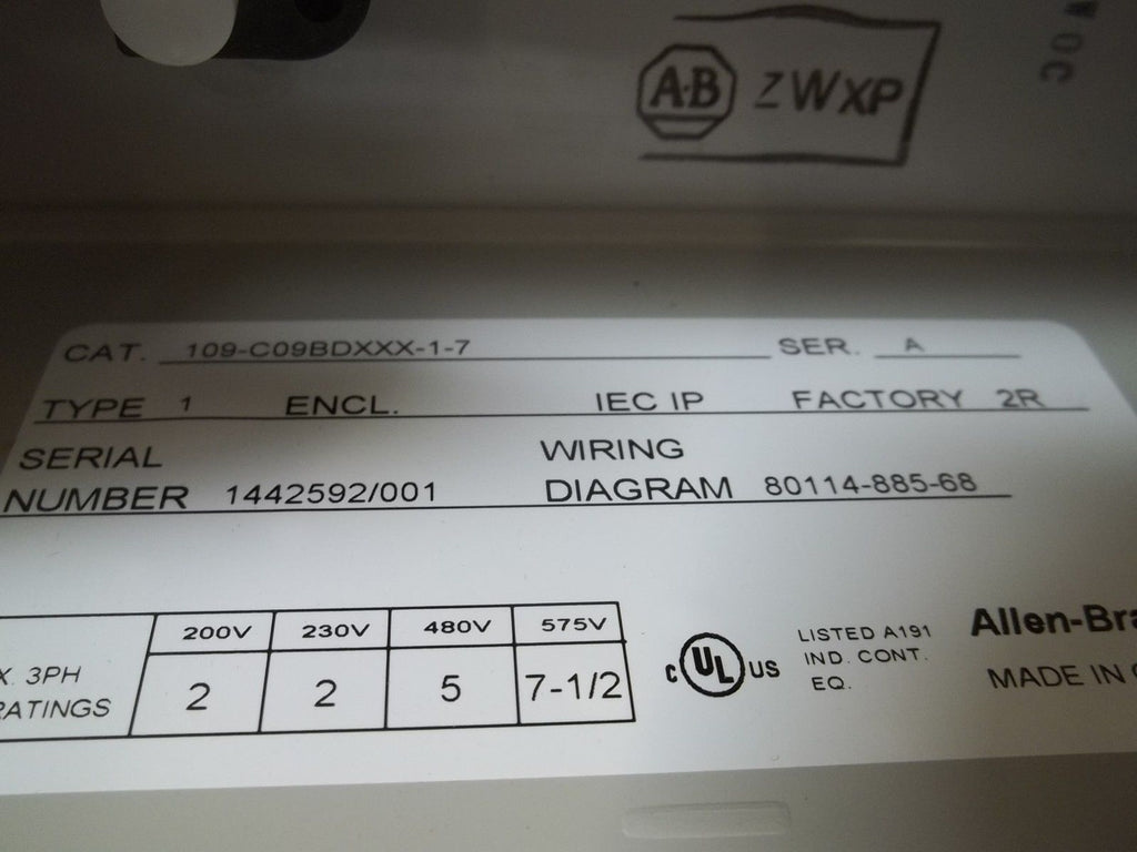 ALLEN BRADLEY 109-C09BDXXX1-7 SER. A STARTER NSMP
