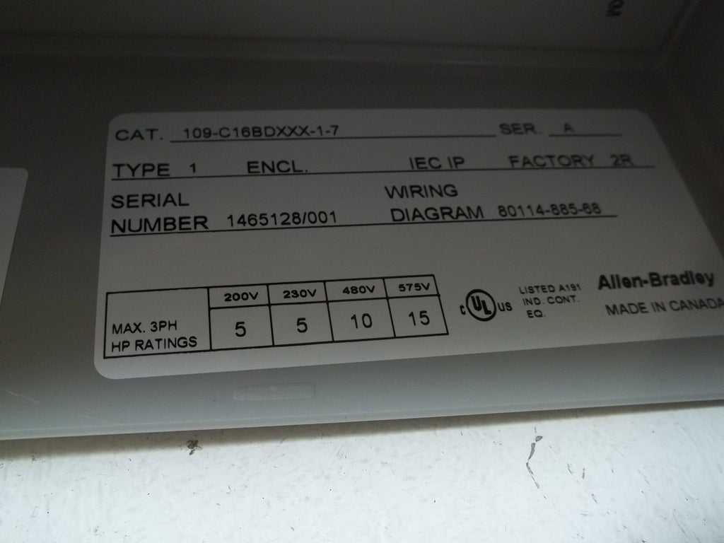 ALLEN BRADLEY 109-C16BDXXX1-7 SER. A STARTER NSMP