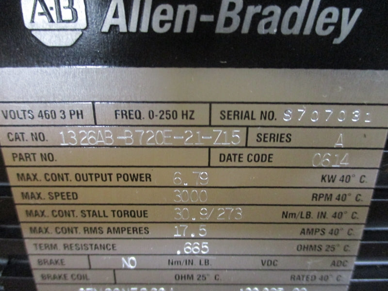 ALLEN BRADLEY 1326AB-B720E-21-Z15 SER. A 17.5A NSMP