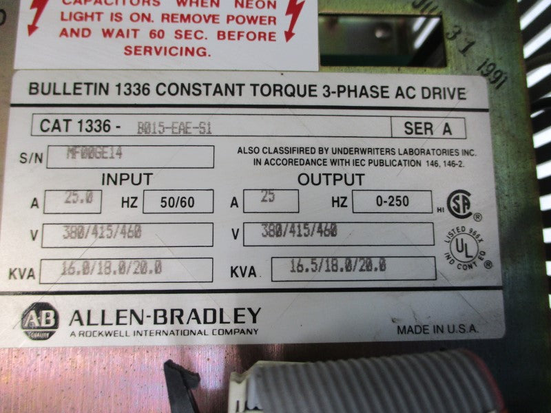 ALLEN BRADLEY 1336-B015-EAE-S1 SER. A 460VAC 25.0A UNMP