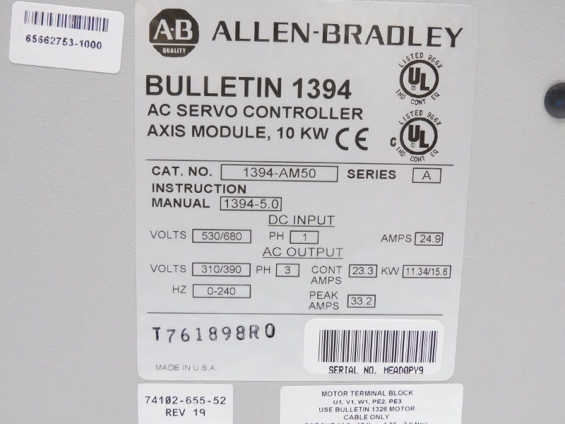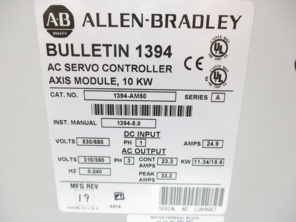 ALLEN BRADLEY 1394-AM50 SER. A 530/680V 24.9A NSNP