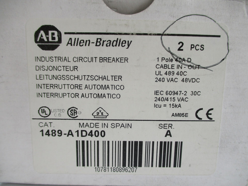 ALLEN BRADLEY 1489-A1D400 SER. A 40A 240VAC (PKG OF 2) NSMP