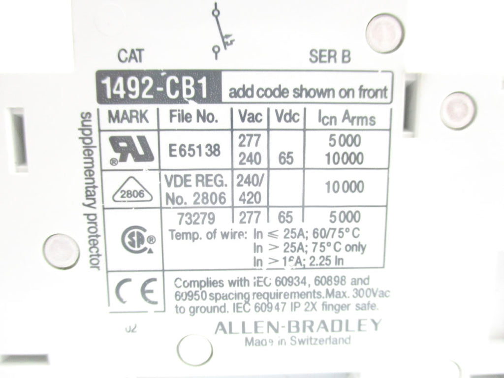 ALLEN BRADLEY 1492-CB1G040 SER. B 277VAC 4A NSNP