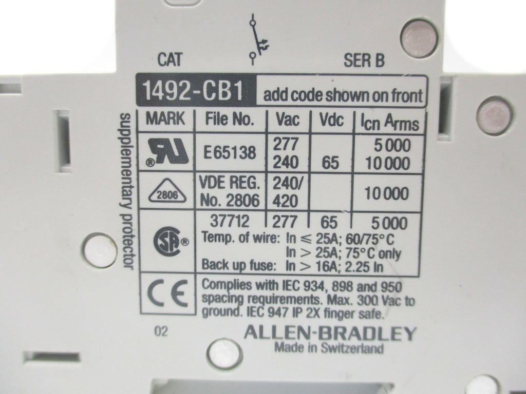 ALLEN BRADLEY 1492-CB1G100 240V UNMP