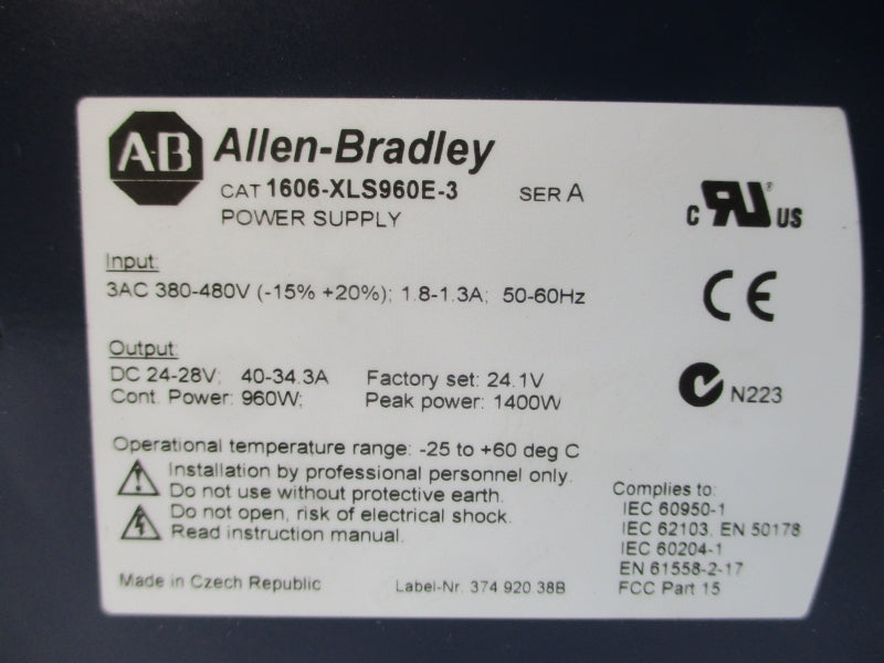 ALLEN BRADLEY 1606-XLS960E-3 SER. A 380-480V 1.8-1.3A NSMP