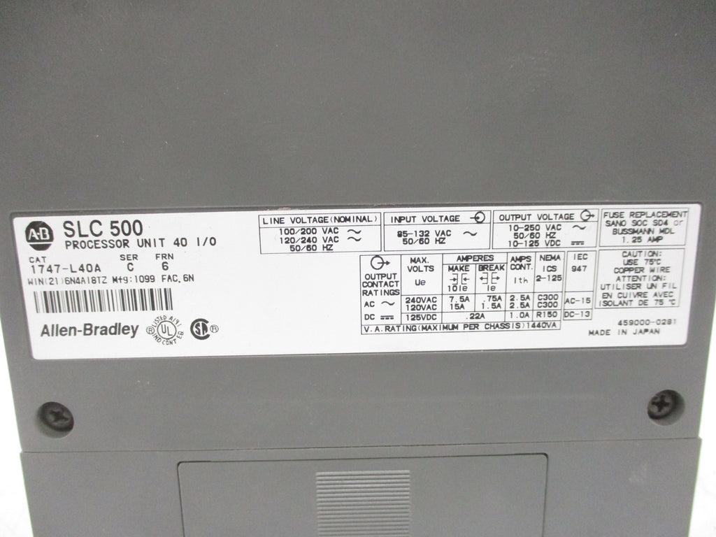 ALLEN BRADLEY 1747-L40A SER. C F/W 6 (AS PICTURED) UNMP