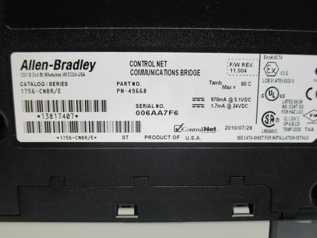ALLEN BRADLEY 1756-CNBR SER. E F/W 11.004 24VDC NSNP