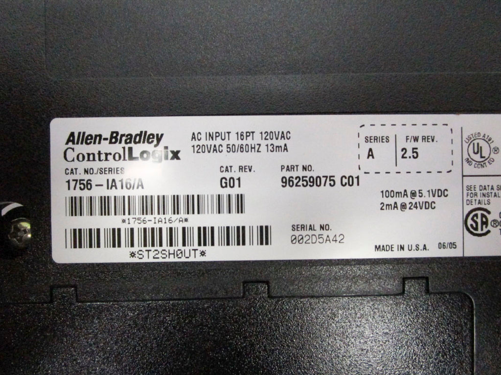 ALLEN BRADLEY 1756-IA16 SER. A F/W 2.5 120VAC (NO DOOR) NSMP