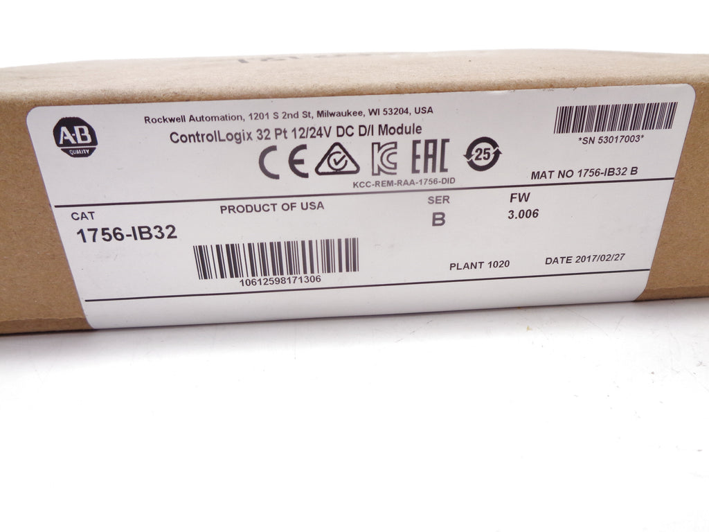 ALLEN BRADLEY 1756-IB32 SER. B F/W 3.006 DATE: 2017 NSFS