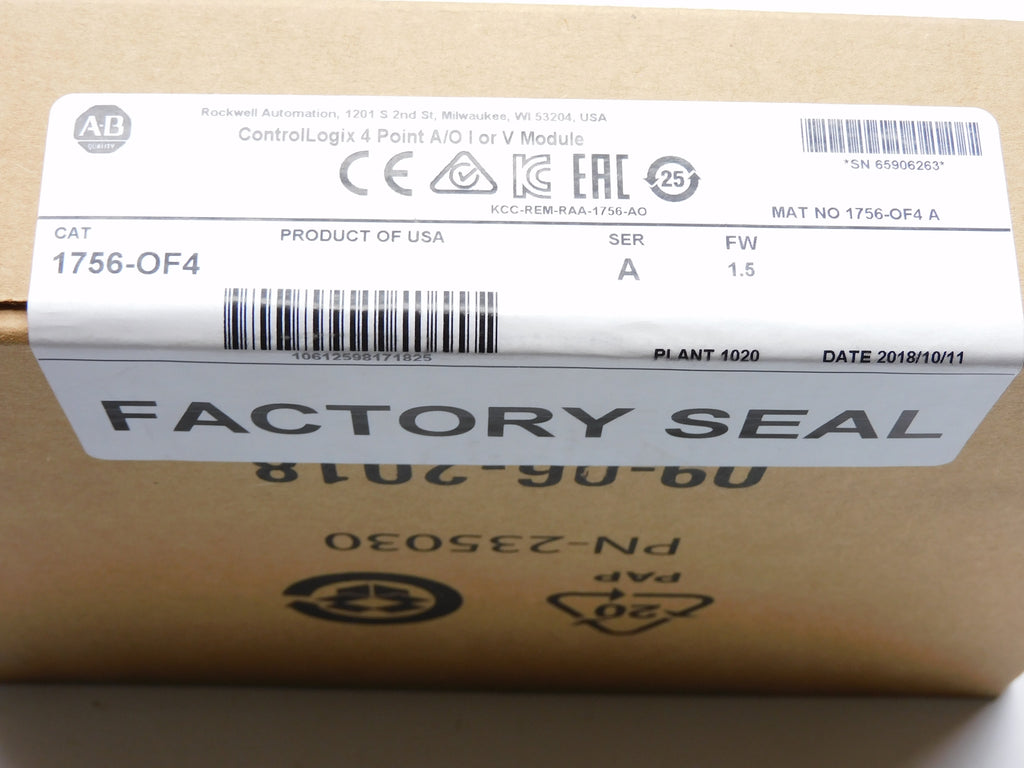 ALLEN BRADLEY 1756-OF4 SER. A F/W 1.5 DATE: 2018 NSFS