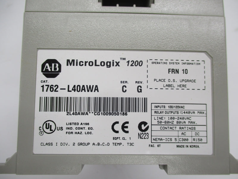 ALLEN BRADLEY 1762-L40AWA SER. C REV. G F/W 10 240VAC NSMP