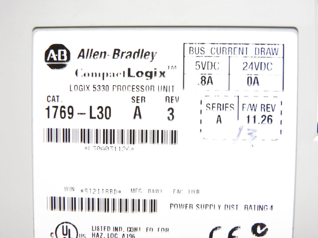 ALLEN BRADLEY 1769-L30 SER. A F/W 11.26 (NO KEY) NSMP