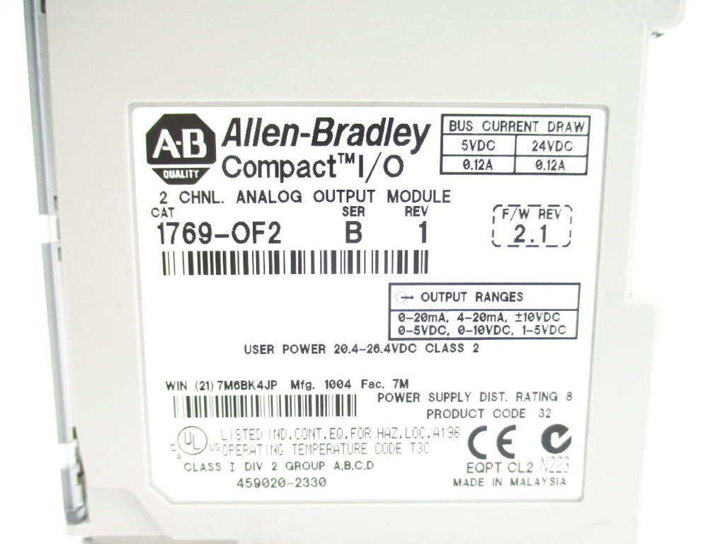 ALLEN BRADLEY 1769-OF2 SER. B F/W 2.1 24VDC 0.12A NSNP