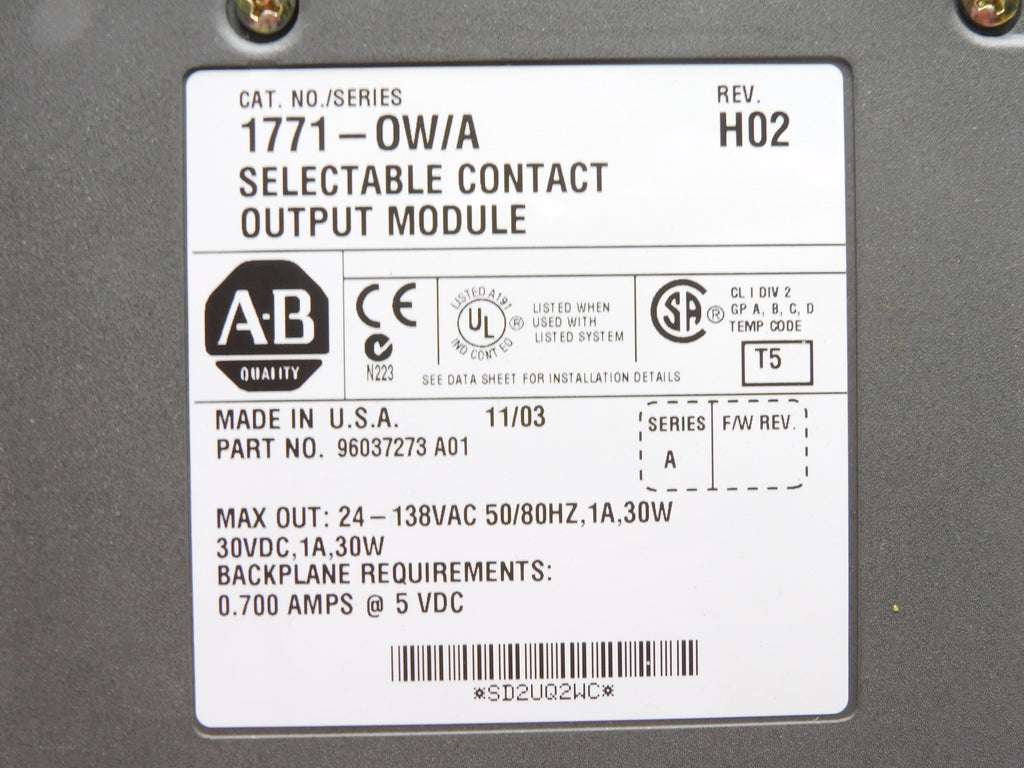 ALLEN BRADLEY 1771-OW SER. A 24-138VAC 1A UNMP
