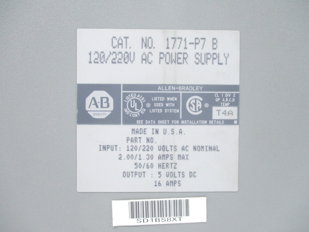 ALLEN BRADLEY 1771-P7 SER. B 120/220VAC 2.00/1.30A UNMP