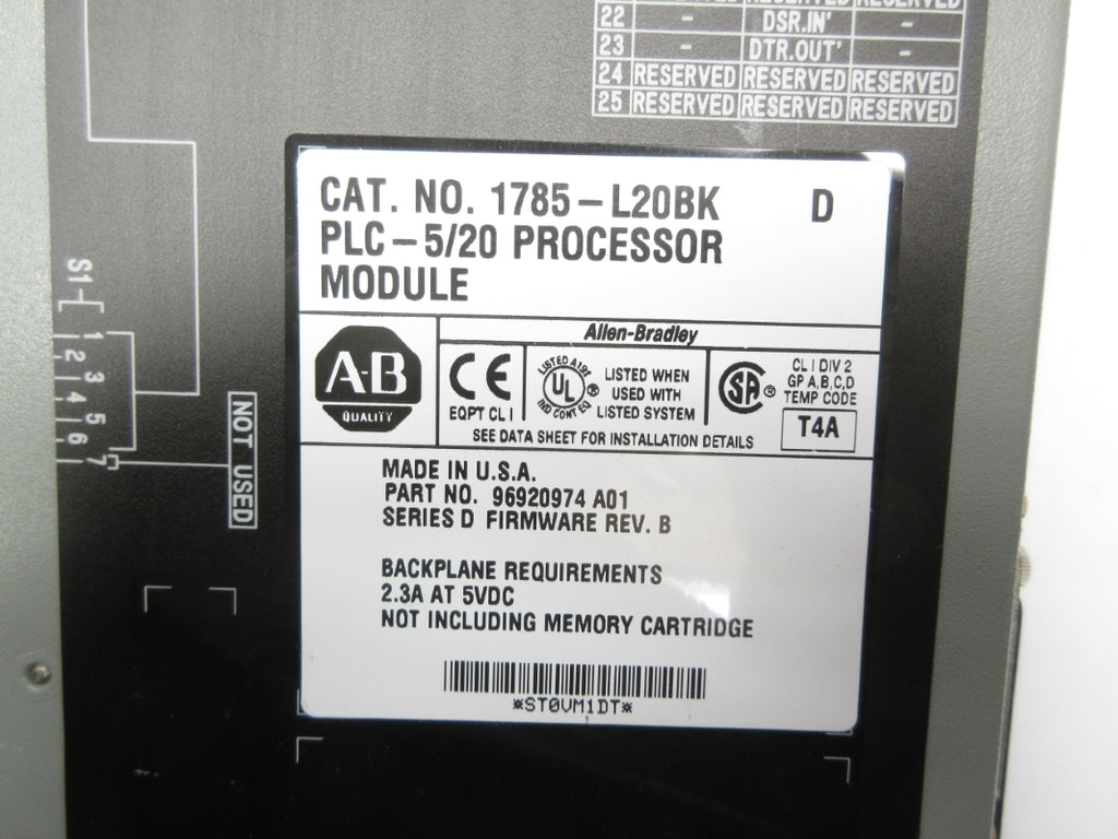 ALLEN BRADLEY 1785-L20BK SER. D F/W B 5VDC 2.3A (NO KEY) NSNP