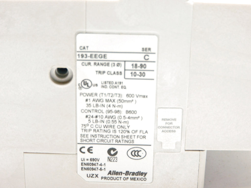 ALLEN BRADLEY 193-EEGE SER. C 600V 18-90A (BR/WH) NSMP