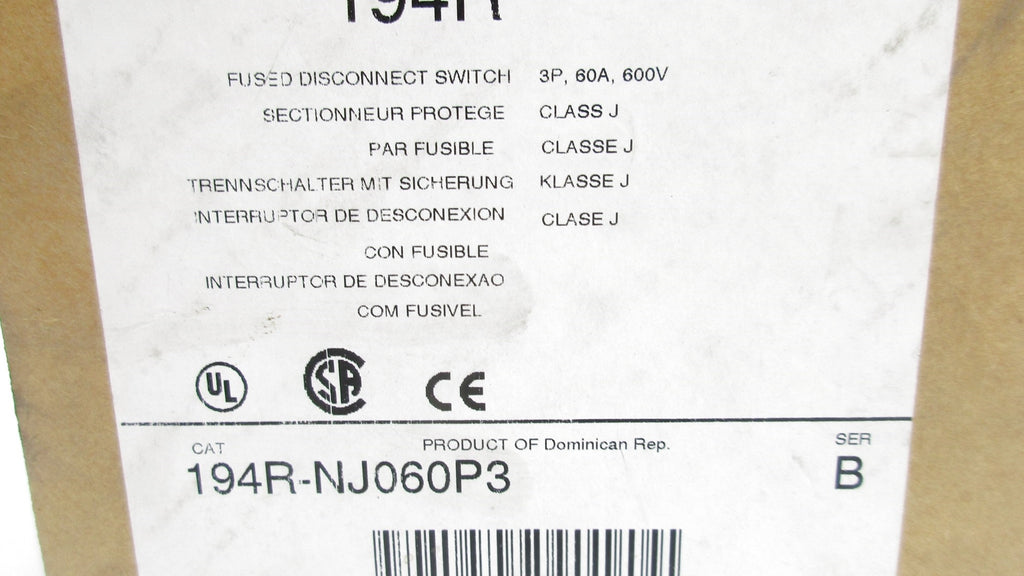 ALLEN BRADLEY 194R-NJ060P3 SER. B 600VAC 60A (BR/WH) NSMP