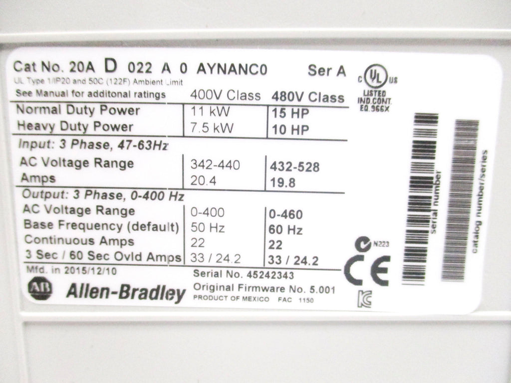 DRIVE, SER. A, F/W 5.001, 480VAC, 22A