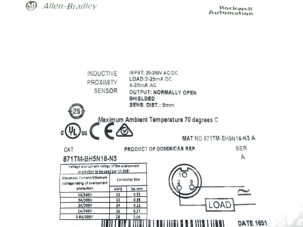 ALLEN BRADLEY 871TM-BH5N18-N3 SER. A 20-250VAC/DC NSMP