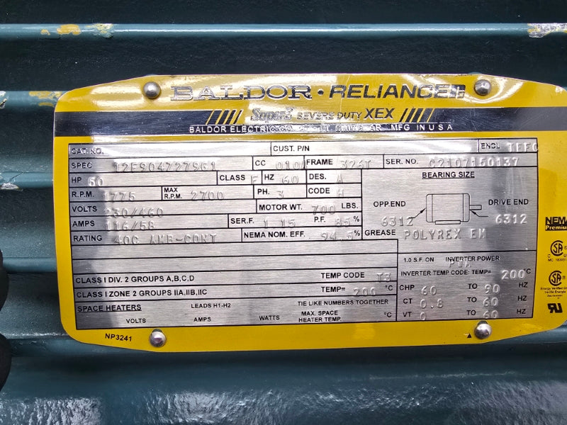 BALDOR ECP4115T 12F904Z279G1 50HP 230/460V 116/58A NSNP