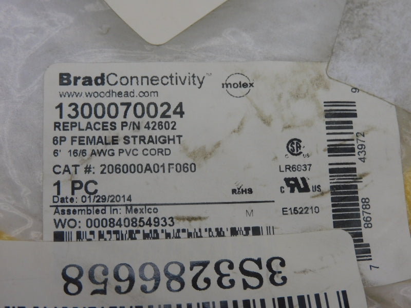 CONNECTOR CABLE, 600V, 8A