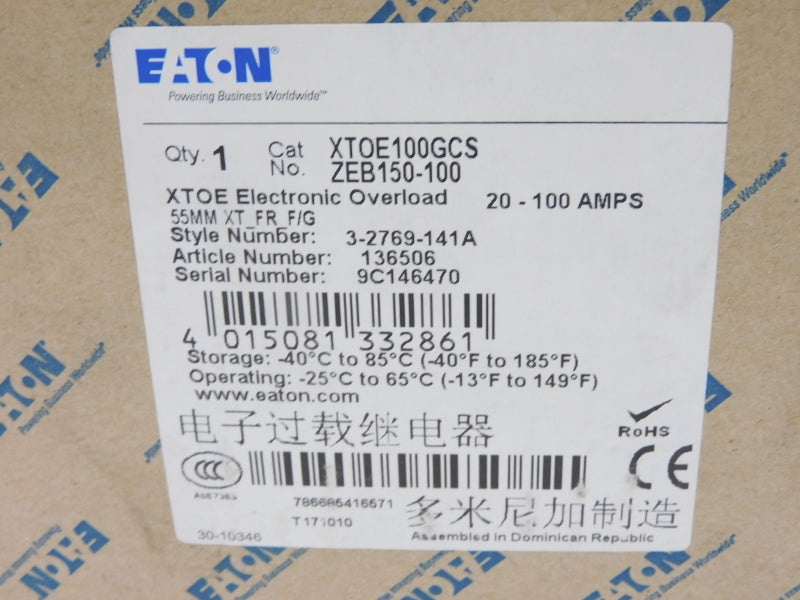 EATON XTOE100GCS ZEB150-100 20-100A NSFS