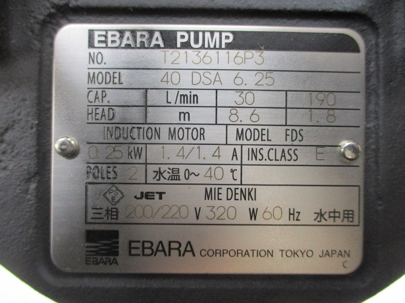 EBARA 40DSA DSA211 200/220-320V 1.4/1.4A NSMP