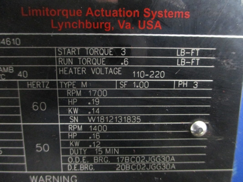 VALVE ACTUATOR, 480V, 1.4A, 1700RPM, .19HP