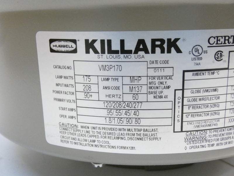 HUBBELL VM3P170 120/208/240/277V 1.8/1.05/.90/.80A NSMP