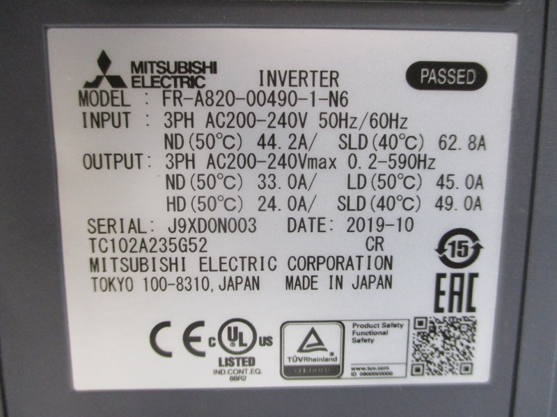 MITSUBISHI FR-A820-00490-1-N6 200-240VAC 44.2A NSMP