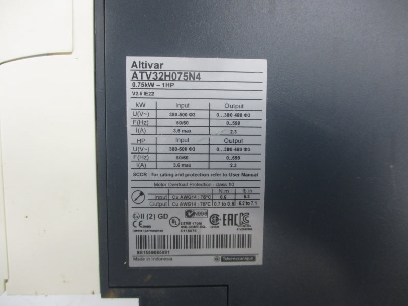 SCHNEIDER ELECTRIC ATV32H075N4 380-500V 3.6A (AS PICTURED) NSNP
