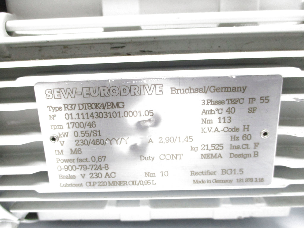 SEW EURODRIVE R37DT80K4/BMG (AS PICTURED) NSNP