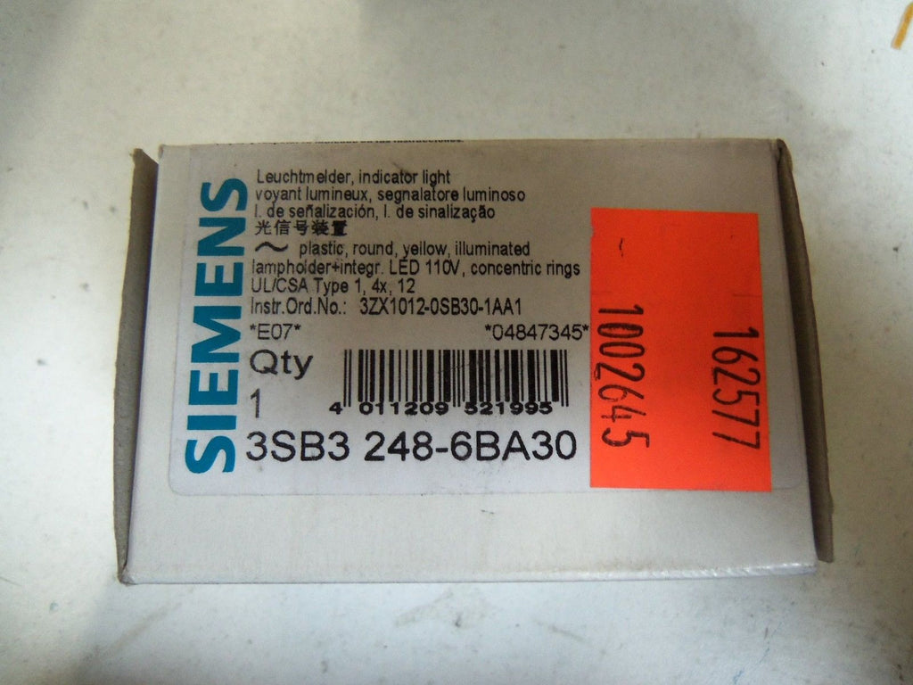 SIEMENS INDICATOR LIGHT (YELLOW) 3SB3 248-6BA30 *NEW IN BOX*