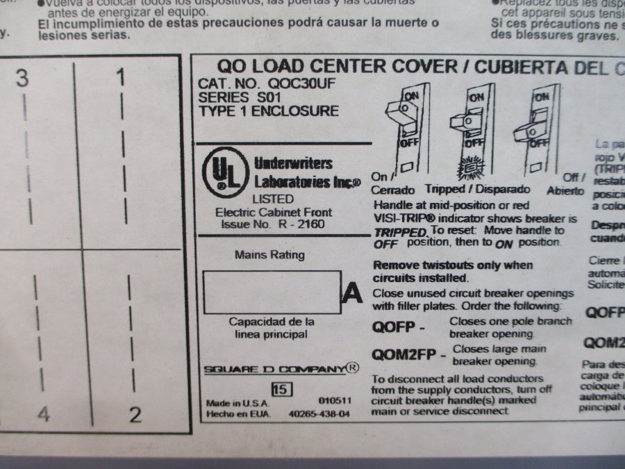 SQUARE D QOC30UF SER. S01 NSNP