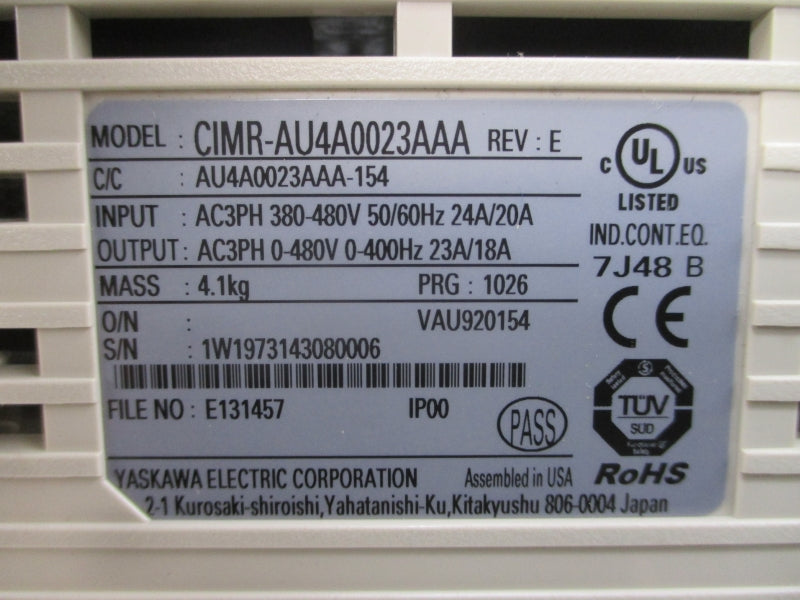 YASKAWA CIMR-AU4A0023AAA 380-480VAC 24/20A REV. E NSMP